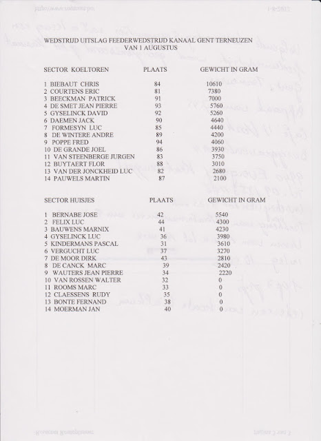 De andere sector zatten aan de huisjes hier werd gewonnen met 5540 gr door Jose Bernabe,tweede werd Luc Felix met 4300 gr ,derde werd Marnix Bauwens met 4230 gr.